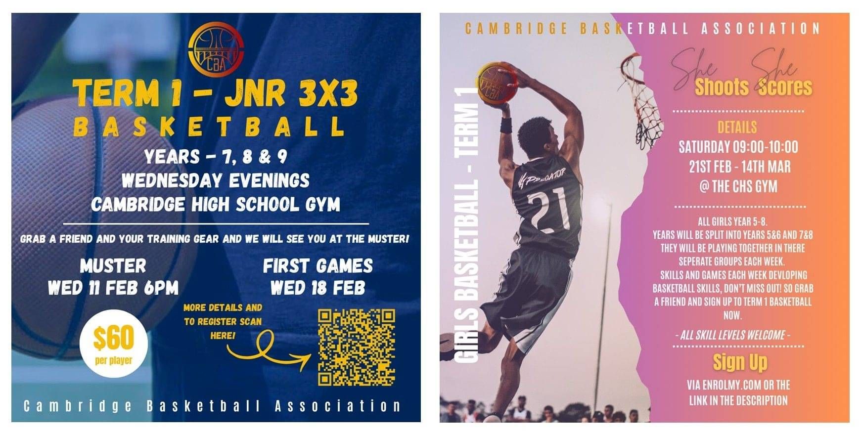 Junior Basketball 3x3 league on Wednesday evenings at the CHS gymnasium - register using the QR code in the flyer below